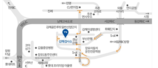 - 김해자동차검사소는 김해골든루트 일반산업단지 내 상업지구(아시스 골프타운 뒷편)에 위치하고 있습니다
