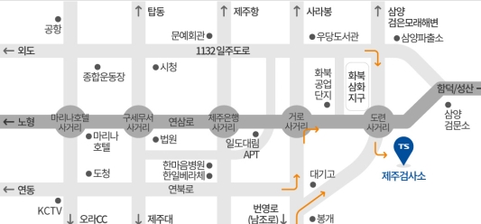 - 제주검사소는 연삼로를 이용하시면 도련사거리에서 남쪽(한라산방면)으로 10m지점에 위치하며 동부관광 도로를 이용하시면 봉개초등교 앞 사거리에서 북쪽 (삼양 해수욕장)으로 1km정도 오시면 됩니다.