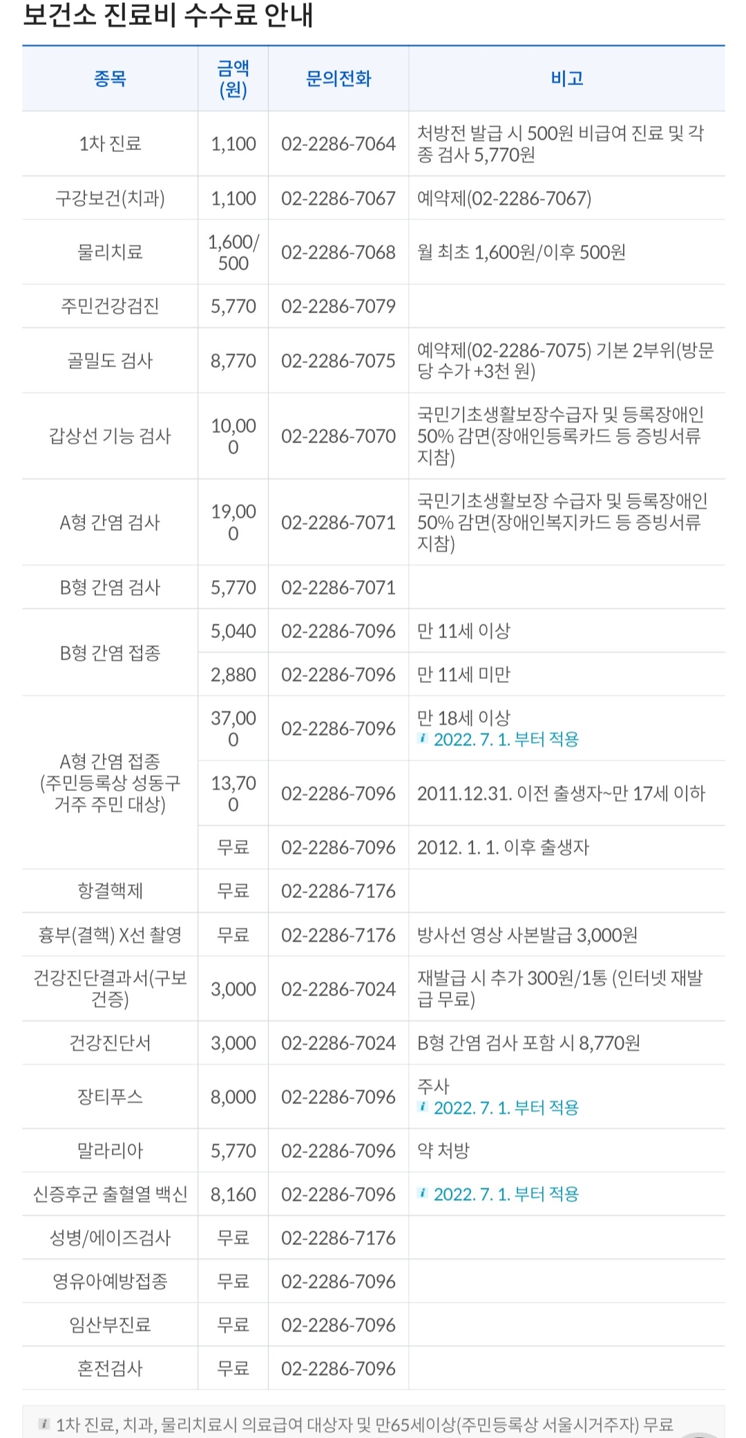 보건소 진료비 수수료