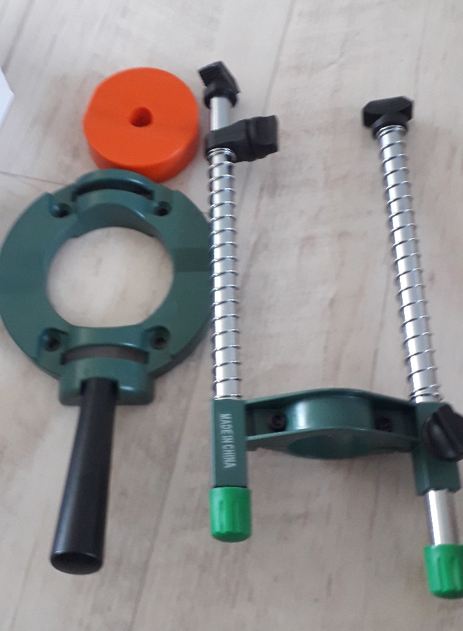 드릴스탠드를 구매 했어요. 가끔 문짝 옆면에 타공을 할때나 어딘가에 구멍을 뚫을때 직각으로 뚫리지 않고 살짝 사선으로 뚫릴때가 있어서 구매 했어요. 문짝 실린더 타공할때 56미리로 손잡이 구멍 타공하고 25미리로 래치구멍 뚫을때 가끔 경사지게 뚫리는 경우가 있어서 25미리 뚫을때 사용하려고 샀어요.
