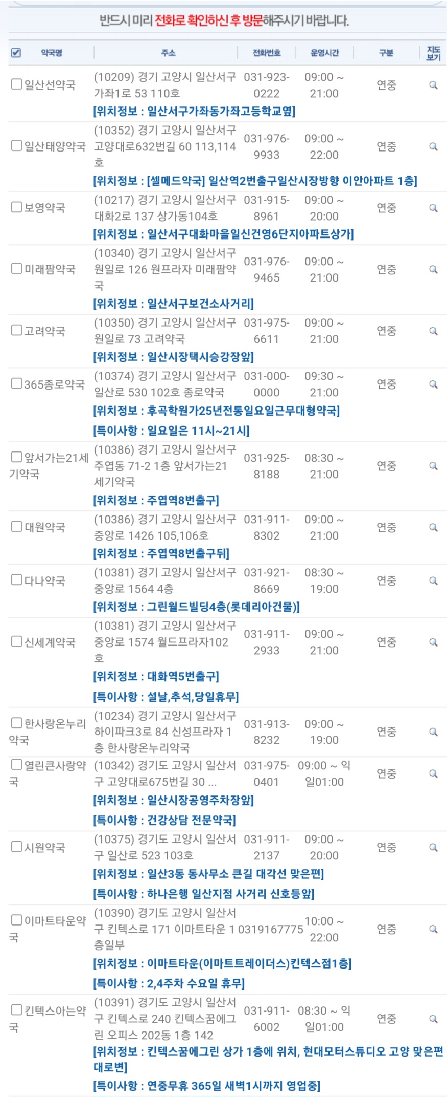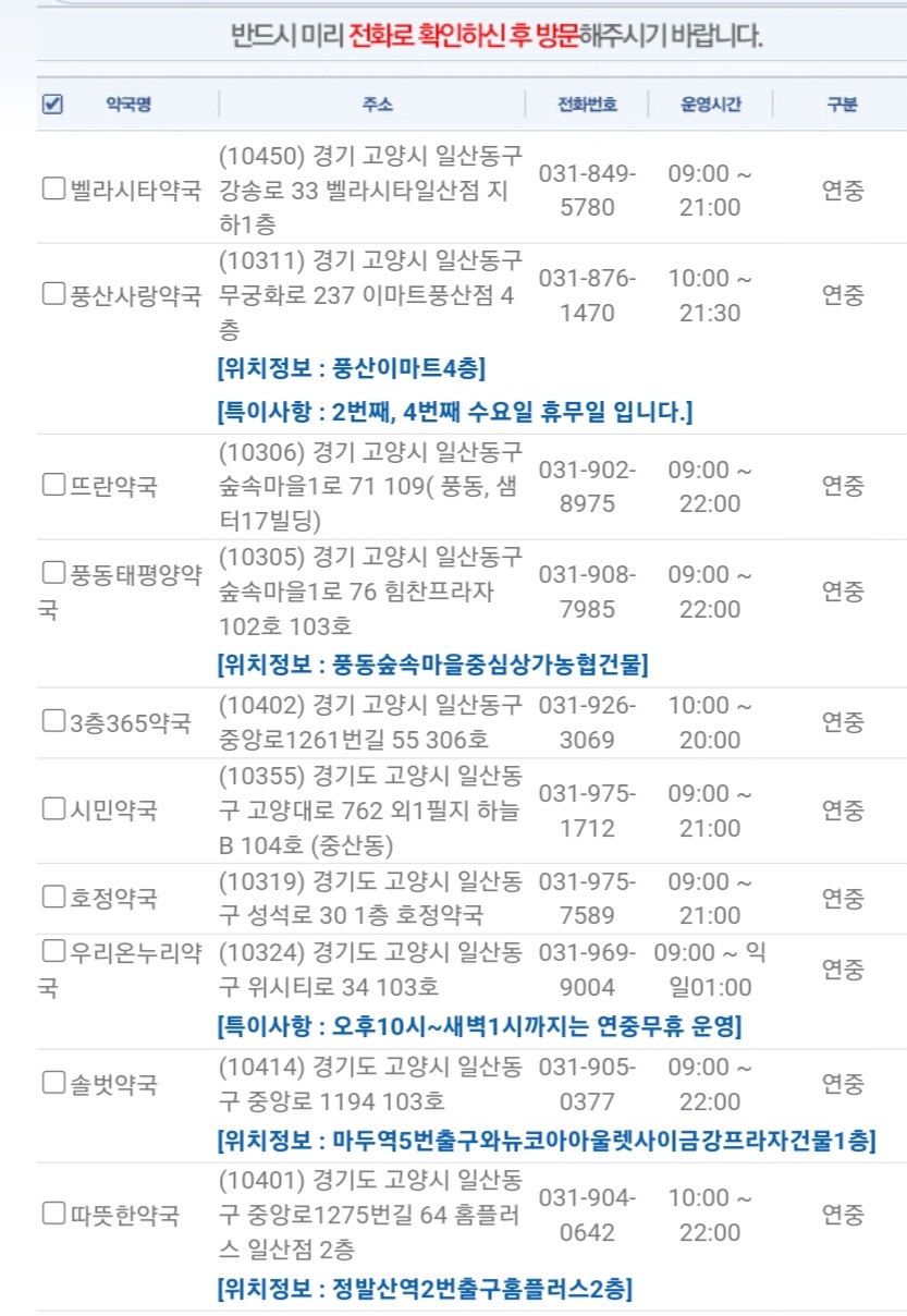 일산 주말약국 24시 약국 일요일약국 심야약국 야간약국 일산동구 일산서구 24시간약국 공휴일약국 일산약국 연중무휴약국 정발산동 주엽역 약국카테고리 없음 2023. 4. 26. 11:06반응형