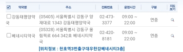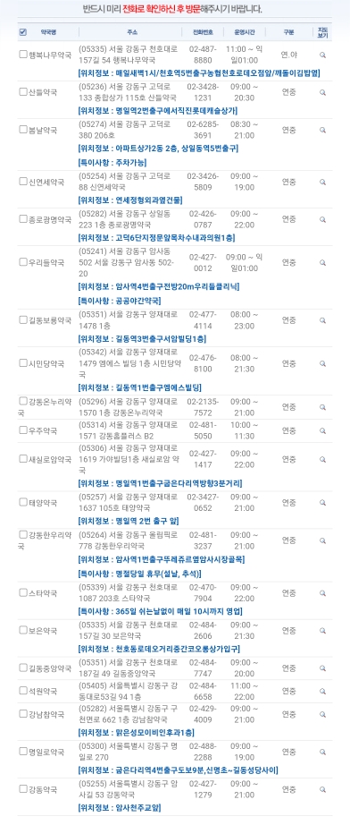 강동구 연중무휴약국, 심야약국출처 pharm114