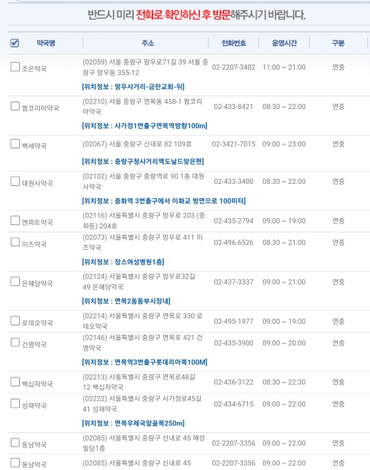 중랑구 일요일약국 24시약국 주말약국 연중무휴약국 야간약국 심야약국 신내동약국 면목동약국 망우동 약국카테고리 없음 2023. 5. 1. 12:25반응형