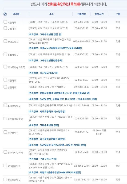구로구 연중무휴 약국, 심야약국출처 pharm114