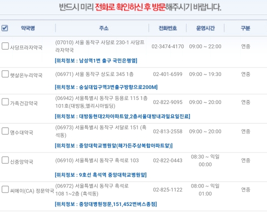동작구 연중무휴약국 운영시간
