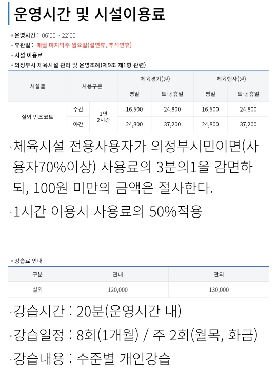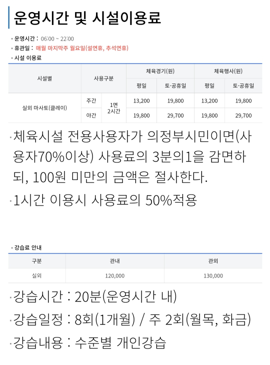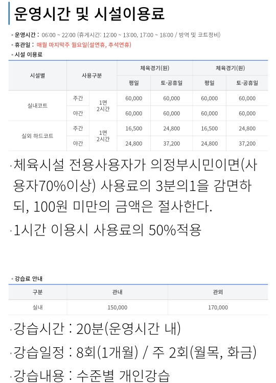 의정부 테니스장 위치, 사용료, 운영