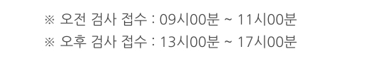 - 오전 검사접수: 09시~11시,오후 검사접수: 13시~17시