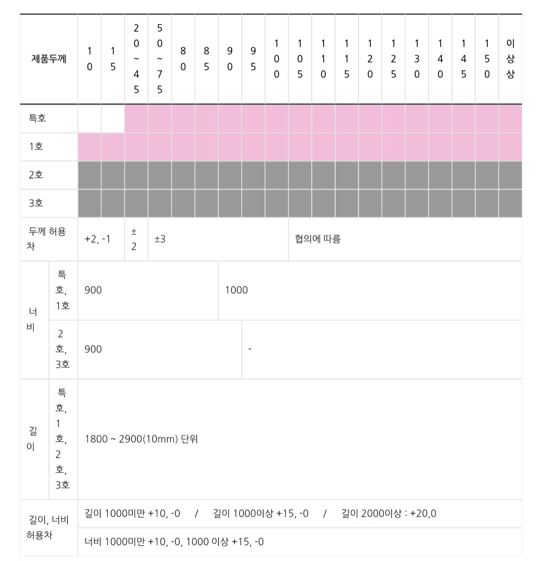 특호와 1호의 경우 구매 가능한 아이소핑크의 두께에도 차이가 있습니다. 2호와 3호의 경우에는 상대적으로 한정된 두께로 나와있구요.