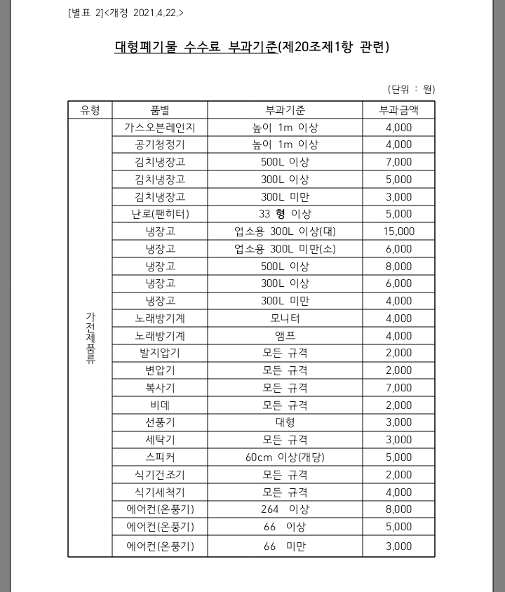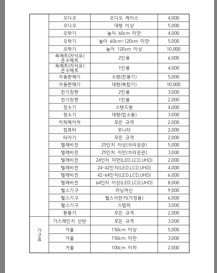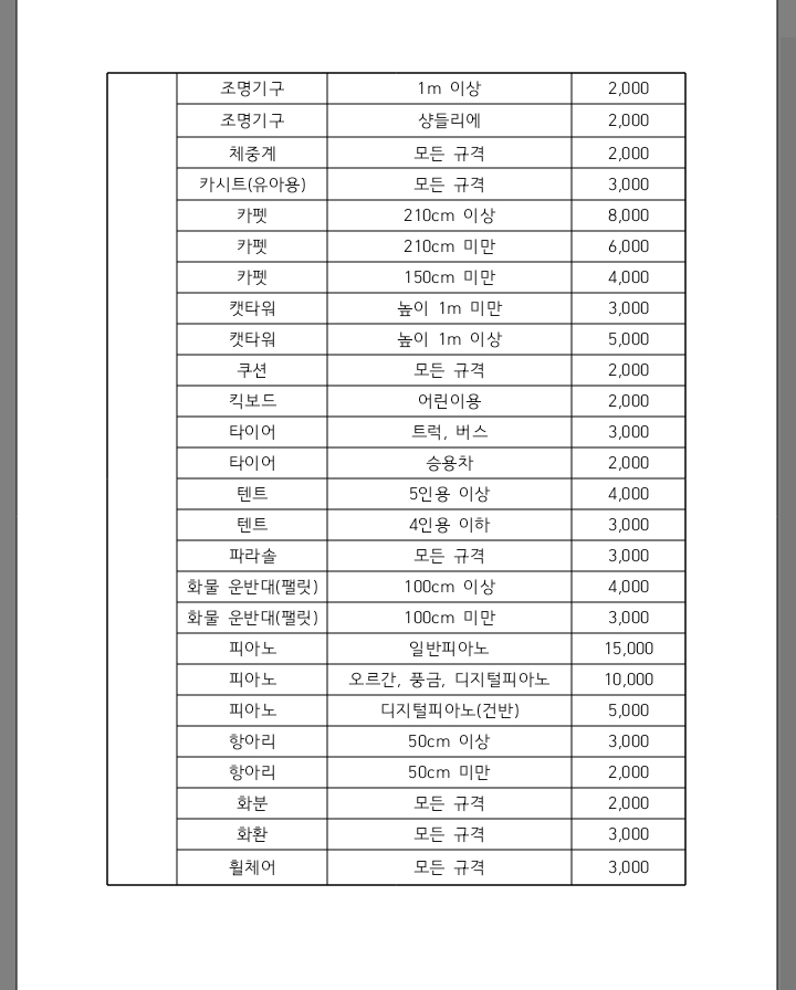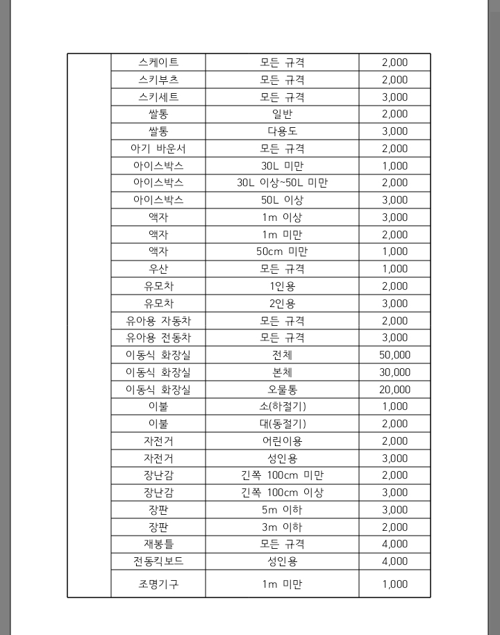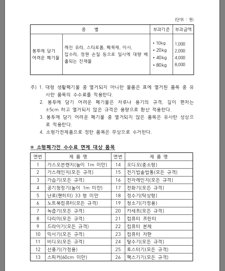 구리시 대형폐기물 수수료