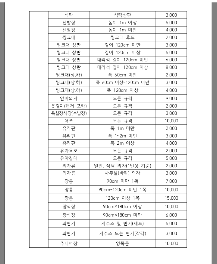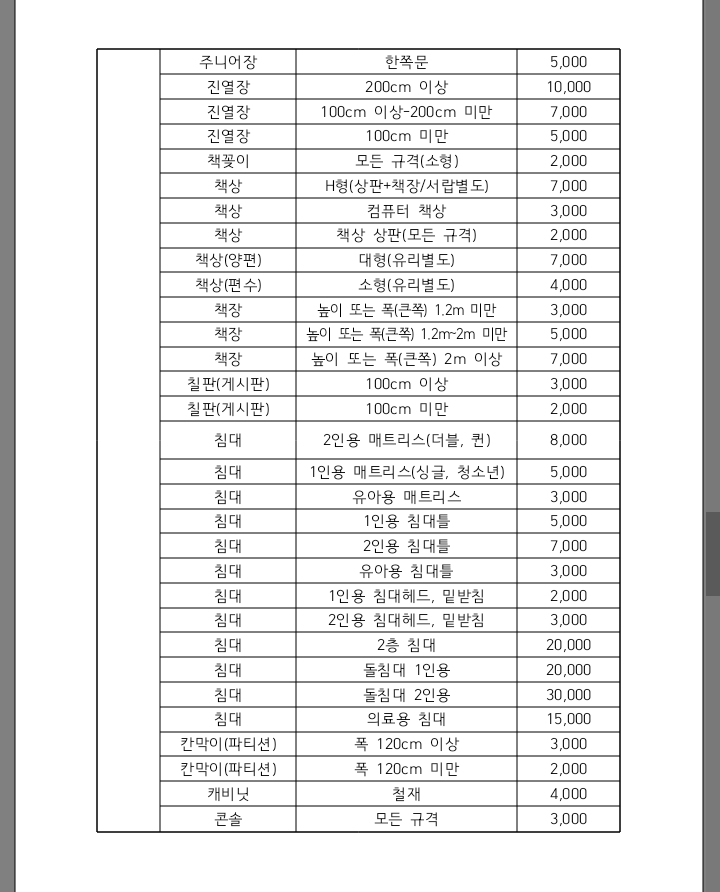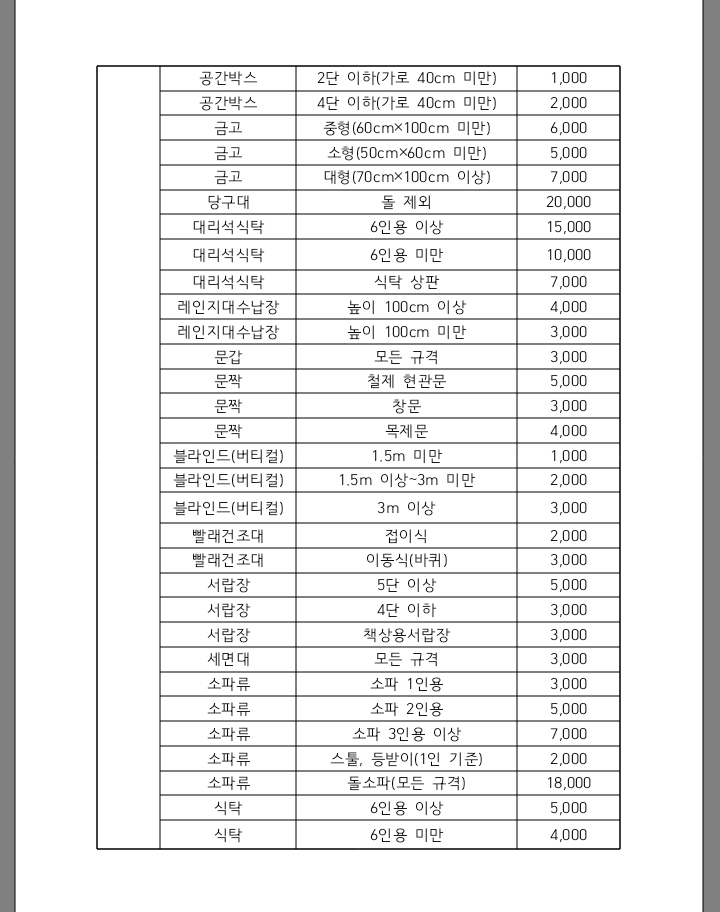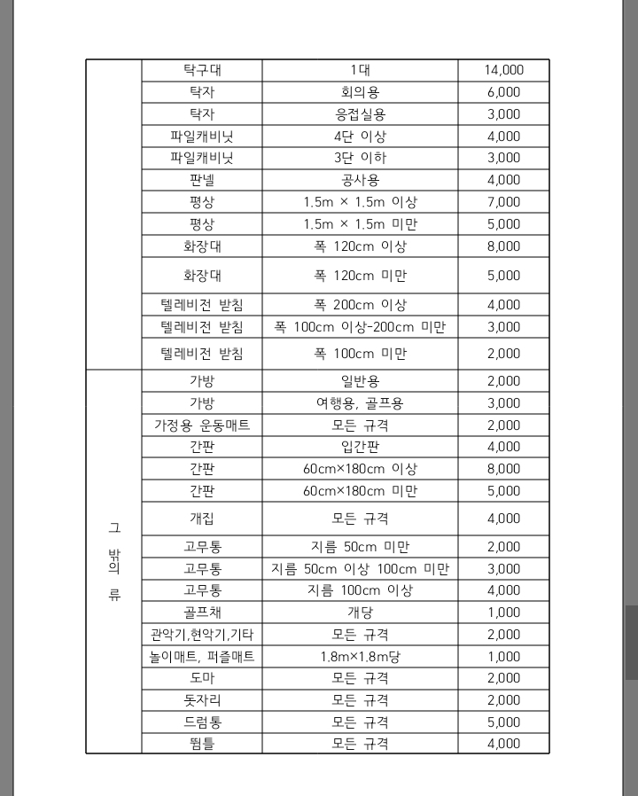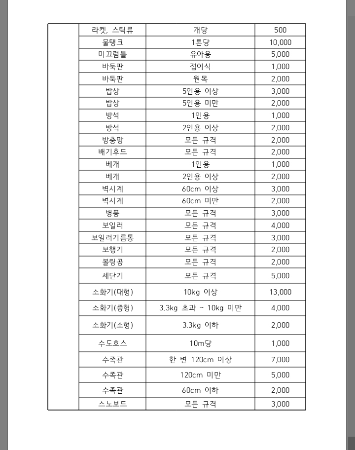 구리시 대형폐기물 수수료