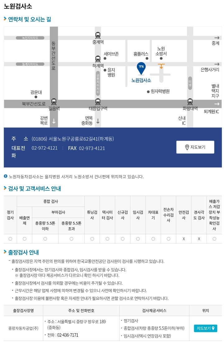 노원자동차검사소는 을지병원사거리 노원소방서 건너편에 위치하고 있습니다출장검사 안내