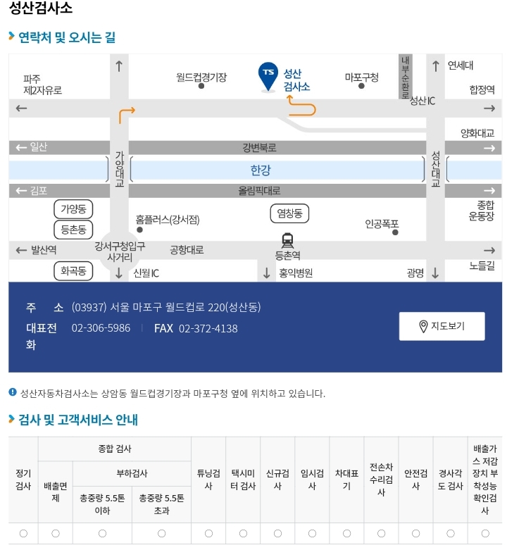 성산자동차검사소는 상암동 월드컵경기장과 마포구청옆에 위치하고 있습니다