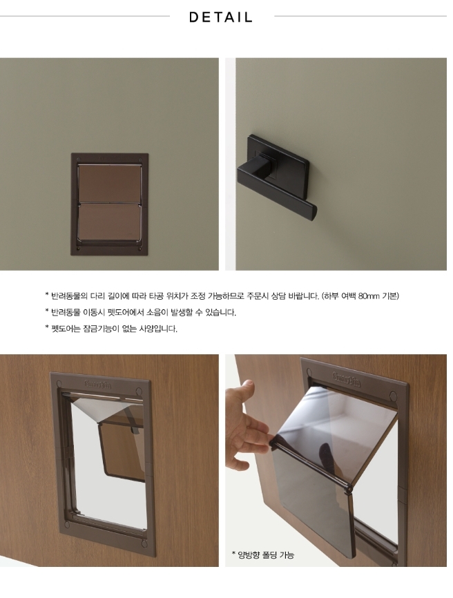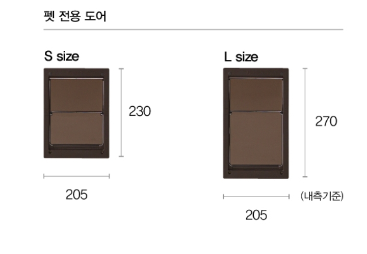 2가지 사이즈로 반려동물 체격에 맞게 선택 가능하시네요출처 예림임업 문을 닫은 상태에서 반려동물이 스스로 양 방향으로 이동 가능한 펫 전용 도어입니다