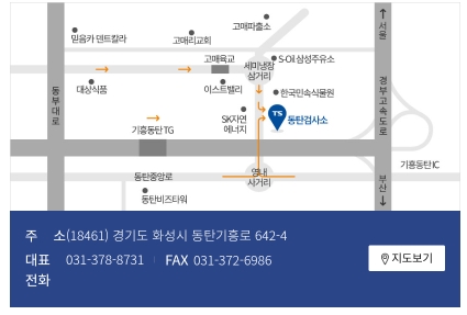 - 동탄자동차검사소는 화성시 동탄기흥로 642-4 에 위치하고 있으며 영내사거리에서 한국민속식물원 방향 약 230m지점 우측, 세미냉장삼거리에서 한국민속식물원 방향으로 약 600m지점 좌측에 위치하고 있습니다.