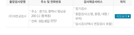 - ※ 출장검사장 마다 제공서비스가 다르오니 확인 하시기 바랍니다.