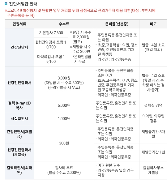 부천시 보건증 발급 비용, 발급 병원출처 부천시보건소